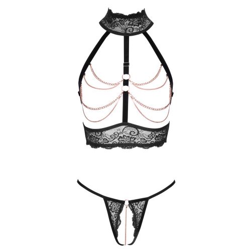 Комплект Abierta Fina відкритий ліф з декоративними ланцюжками та трусики з доступом, чорний, XL