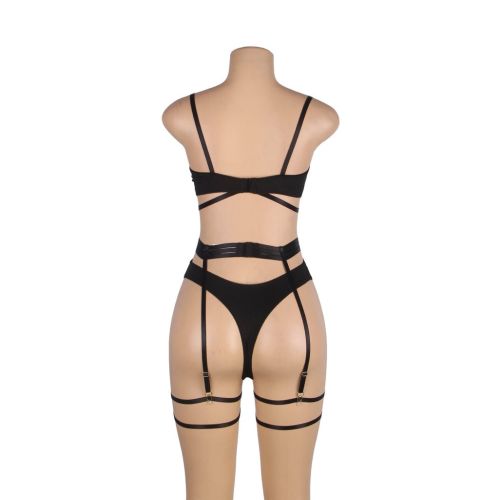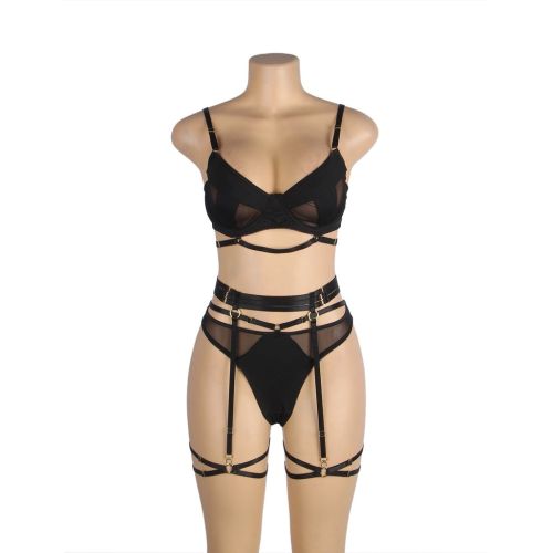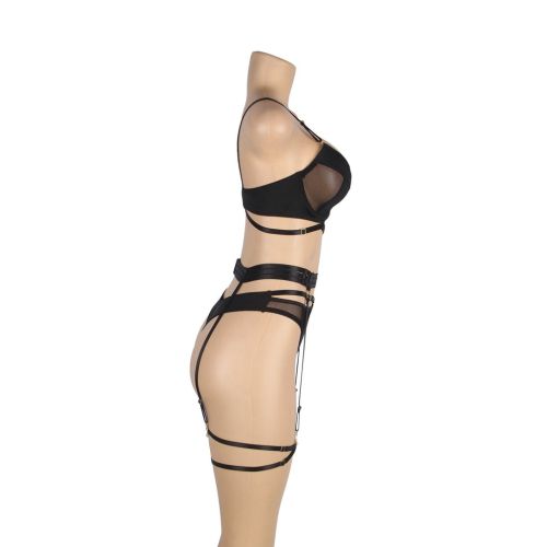 Комплект нижньої білизни із сіточки з підтяжками для панчох та гартерами чорного кольору Star Night