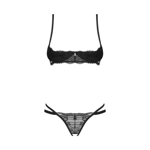 Еротичний комплект жіночої білизни чорного кольору Obsessive Nutris 2-pcs crotchless set XL/2XL
