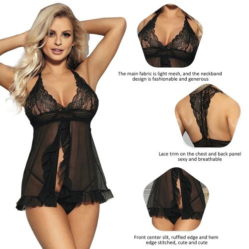Передня частина прикрашена розрізом із хвилястими краями, що додає моделі грайливого шарму. Пеньюар комплектується зручними стрінгами, які гармонійно доповнюють образ та роблять його завершеним. Ідеально підійде як для романтичного вечора, так і для особливих моментів.