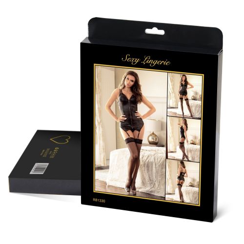 Корсет з підтяжками та підв'язками Star Night на блискавці, чорний, L