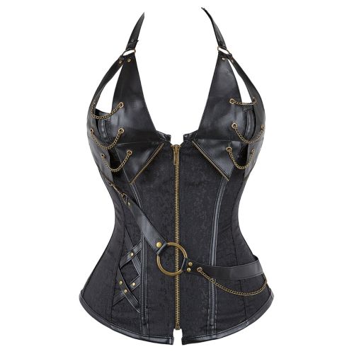 Корсет з глибоким декольте на блискавці чорний Star Night 14 Soft Steel Bones розмір XS