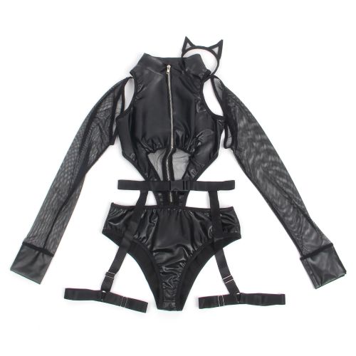 Костюм кішечки Star Night створений для сміливого та виразного образу, поєднуючи глянсову текстуру матеріалу із вставками із сітки та продуманими ергономічними елементами. Боді з центральною блискавкою легко одягається і знімається, забезпечуючи зручність у використанні та точну посадку по фігурі.