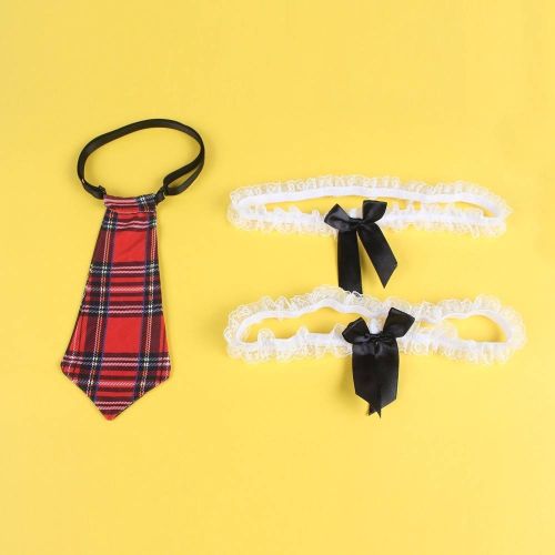 Костюм школярки Star Night поєднує відкритий мереживний бюстгальтер, шортики та краватку в клітинку, а також еластичні підтяжки, створюючи виразний та грайливий образ. Продукт виконаний у стилі коледжської уніформи з якісних матеріалів, що забезпечують комфорт та довговічність.
