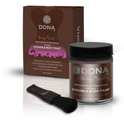 Крем-фарба Dona Kissable Body Paint CHOCOLATE mousse абсолютно безпечна і відкриє для вас абсолютно нові види інтимних пустощів і збудження. Крім приємної, повітряної консистенції крему, у засобу легкий шоколадний колір, тонкий запах і смак шоколаду, а також до складу крему додані феромони і афродизіак, щоб інтимна близькість була ще більш пристрасною і незабутньою.