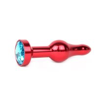 Анальна пробка металева JEWELRY червона L 10,3 см D 2,8 см з блакитним кристалом