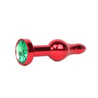 Анальна пробка металева JEWELRY червона L 10,3 см D 2,8 см з зеленим кристалом