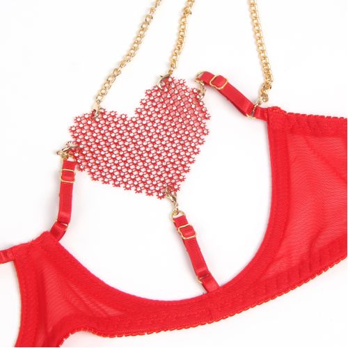 Червоний сексуальний комплект білизни в сіточку Star Night з ланцюжками та серцями, L