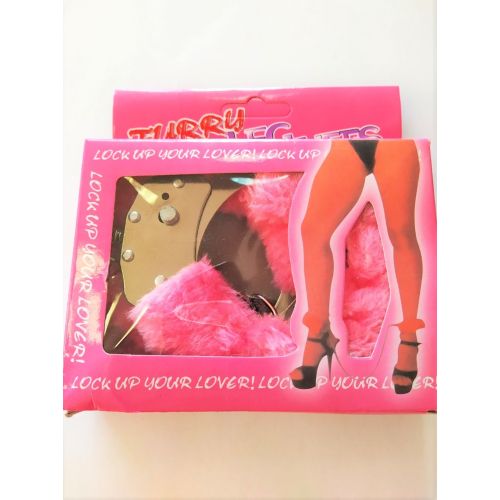 Наручники металеві з хутром рожеві довгий ланцюжок Sexy desires