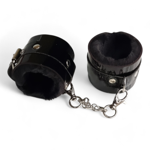 Спробуйте закувати вашу другу половинку у надійні лакові наручники. Незамінна річ для любителів жорстких еротичних ігор! Надійно прив'язавши вашу видобуток ви сміливо зможете катувати її всіма різними і доступними для вас способами. Кожен аксесуар виготовлений з еко-шкіри тонкого вироблення неймовірного червоного відтінку з хутром і прикрашений металевими аксесуарами срібла. Тримайте партнера повністю зафіксованим у цих кайданках! Ці манжети, з'єднані швидкороз'ємним затискачем, можна прикріпити до інших ременів безпеки або будь-якого обладнання, яке у вас є. Міцні, але гладкі, з м'яким хутром усередині. Головне вміти вчасно зупинитися і не переступити межу дозволеного і розпусного світу сексу та кохання!!