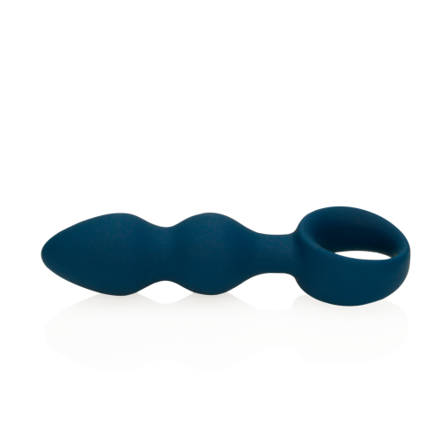 Силіконовий анальний чепчик рельєфний з кільцем синього кольору Loveline розмір L