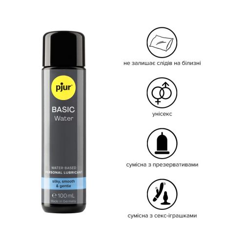 Опис: Вас чекає незабутній експеримент у сексуальних стосунках завдяки лубриканту на водній основі pjur Basic. Це не просто змащування, це спосіб підсилити відчуття та рознообразити своє інтимне життя! Спеціальна формула продукту забезпечує м'якість та додаткове зволоження. Тривале ковзання робить процес більш приємним та незвичайним. Ідеально підходить для використання з будь-якими видами інтим-іграшок.Склад