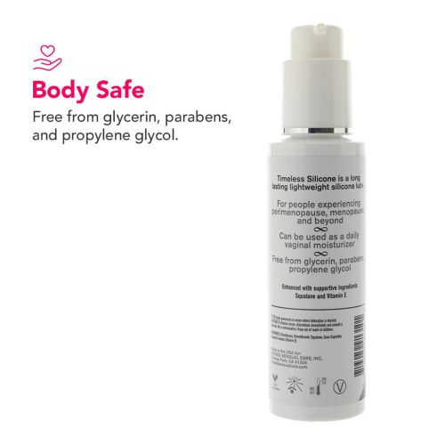 Timeless Silicone – легкий силіконовий лубрикант для тривалої гри. Менопауза і старіння можуть внести зміни до нашого тіла, але наше право віддавати перевагу насолоді залишається незмінним.