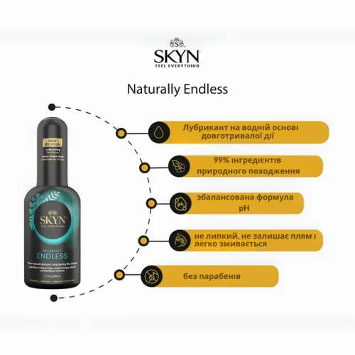 Лубрикант на водній основі для безмежної насолоди. Випробуй нові відчуття з Skyn Naturally Endless -