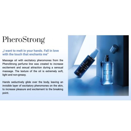 Масла для догляду за тілом з ароматною нотою парфумів з лінії PheroStrong поєднують у собі силу природи, ефективність науки і ласку почуттів. Щоб надати вам якнайбільше переваг, ми використовували ретельно відібрану суміш унікальних інгредієнтів. Відкрийте наш секрет і насолоджуйтеся чуттєвим масажем у поєднанні із доглядом за шкірою. Верхня нота: грейпфрут, морські ноти, Мандарин. Переклад: лавровий лист, жасмин. Базова нота: пачулі, терпке борошно, амбра, гваякове дерево. Масажні масла використовуються для полегшення масажних процедур та створення приємної атмосфери. Вони можуть допомогти пом'якшити шкіру, знизити тертя та покращити ковзання рук під час масажу. Важливо пам'ятати, що перед використанням масажу переконайтеся, що ви не маєте алергічних реакцій на компоненти масла. Також слідуйте інструкціям по застосуванню і зберігайте олії в прохолодному місці, захищеному від сонячного світла. смаки. Широкий асортимент продукції: парфуми, олії, концентрати феромонів. Кожен знайде щось собі. Наші парфуми улюблені впливовими людьми по всьому світу, а наші ароматичні свічки наповнять вашу квартиру, вітальню та спальню ароматом та додадуть стилю вашому будинку. З PheroStrong ви зможете зробити кожне побачення успішним, а кожне випробування стане реалістичною метою. Знання того, як феромони працюють у поєднанні з правильною парфумерною композицією і як їх використовувати, може відкрити вам величезні можливості. Ви самі побачите, як зміниться ваша повсякденна та професійна взаємодія, як легко скласти іспити або завести нових друзів у клубі. Подивіться, чи допоможуть феромони в ароматах PheroStrong збудити бажання у протилежної статі, щоб ви могли наелектризувати свої почуття і без стримування задовольнити свої бажання і похоті, здобути впевненість і нових друзів, домогтися професійного успіху і підвищити ефективність своєї роботи, користуватися повагою УСПІХУ.