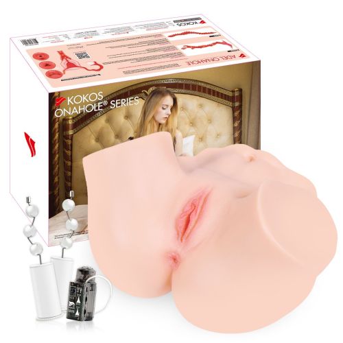 Мастурбатор полуторс Анус і Вагіна з вібрацією та масажем тілесного кольору Kokos 001 Adel ONAHOLE 2WayPlus