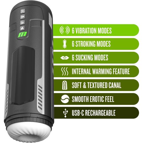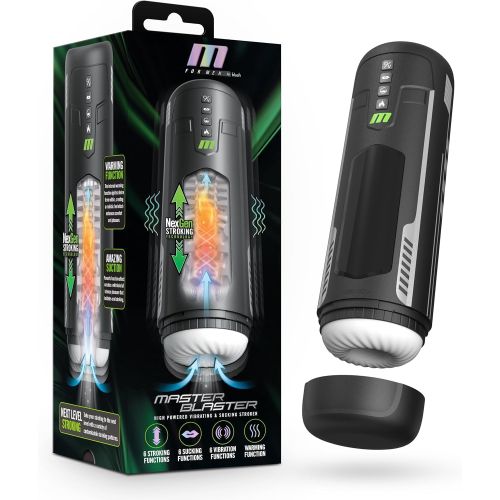 Автоматичний мастурбатор з вібрацією, функцією всмоктування та підігрівом у чорному циліндрі Blush Master Blaster