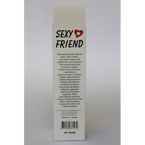 Неймовірно покращіть свій інтимний досвід з мастурбатором-вагіною Sexy Friend! Виготовлений з якісного термопластичного еластомера, він бездоганно імітує справжню жіночу шкіру. З довжиною 13 сантиметрів і здатним розширюватися, цей доступний за ціною товар надає цілком новий рівень стимуляції. Внутрішня текстура дарує незабутні відчуття, а компактний розмір робить його ідеальним для подорожей.Інструкція застосування