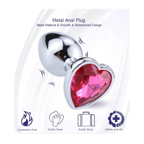 Металевий анальний чепець сріблястий з рожевим камінцем у формі серця Sexy desires Heart розмір S