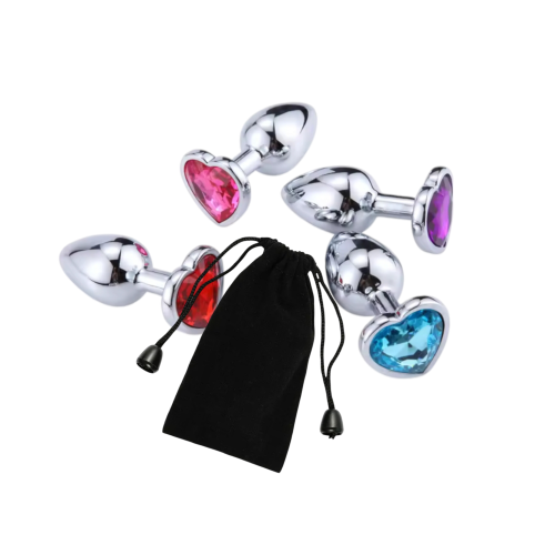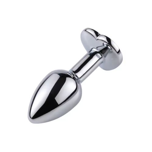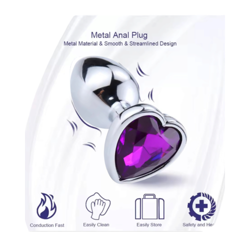 Металевий анальний чепець сріблястий з фіолетовим камінцем у формі серця Sexy Desires Heart розмір S