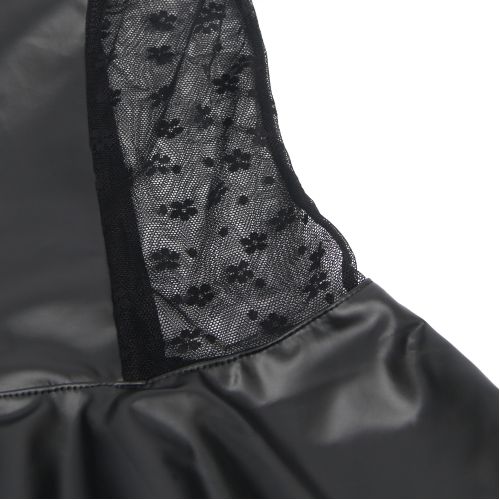 Міні-сукня Star Night поєднує імітацію шкіри з мереживною сіткою з боків талії, створюючи сміливий та модний образ. Передня блискавка дозволяє швидко надягати та знімати виріб, а відкрита спинка з переплетеними стрічками додає елегантності та регульованості посадки.