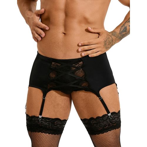 Чоловічий комплект Star Night мереживний пояс з підв'язками і панчохи-сітка, чорний, XL
