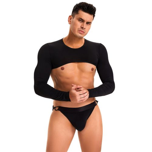 Побалуйте себе неперевершеною розкішшю з комплектом нижньої білизни Star Night Black Sleeves Crop Top Sexy Men Lingerie Set від Farawlaya. Виготовлений із високоякісного матеріалу Ice Silk, цей комплект забезпечує комфорт та чуттєвість.