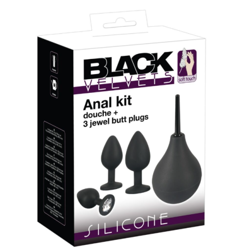 Набір для сексу анальний душ + 3 анальні пробки чорного кольору Black Velvets Anal Kit