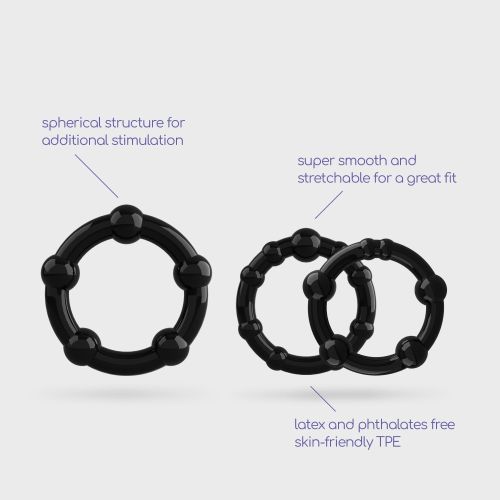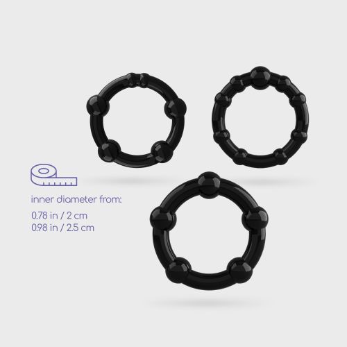 Набор эрекционных колец Crushious, силиконовые, черные, 3 шт. (2 см, 2 см, 2,5 см)