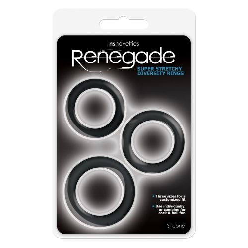 Kупіть набір ерекційних кілець на член чорного кольору NS Novelties Renegade прямо зараз, щоб відкрити нові грані ваших еротичних пригод! Ознайомтеся з повним асортиментом ерекційних кілець у нашому інтернет-магазині та оберіть ідеальне рішення саме для вас!