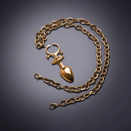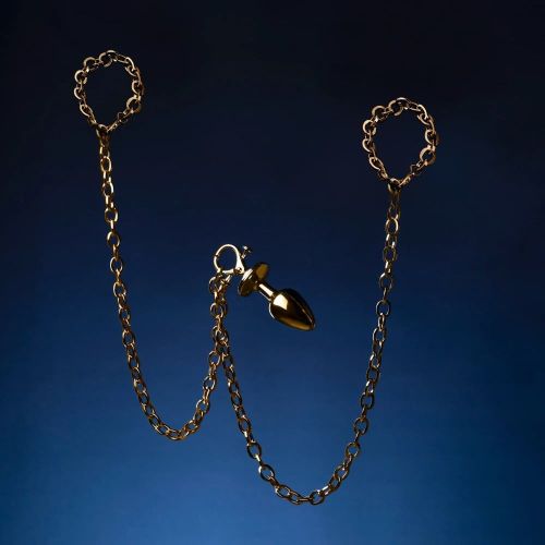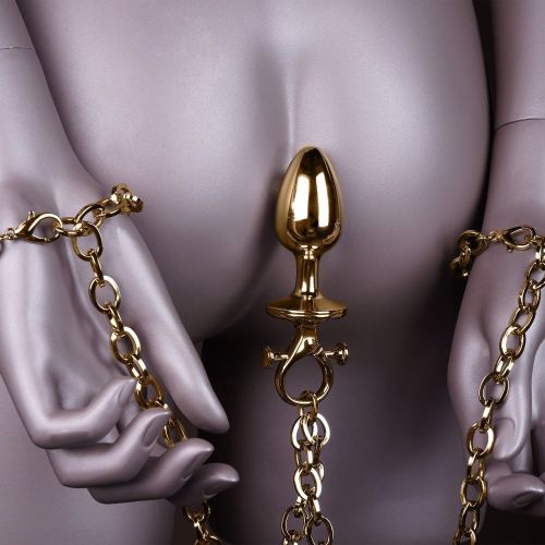 Набір для БДСМ анальна пробка та ланцюжок з наручниками золотистого кольору UPKO