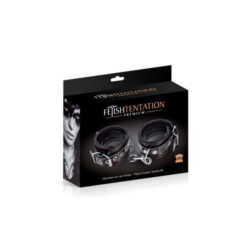 Наручники із лакованої шкіри преміум класу чорного кольору Fetish Tentation Premium