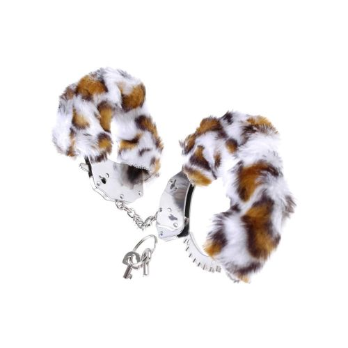 Наручники металеві на тонкому ланцюжку Roomfun з хутром під ягуар