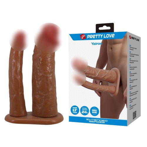 Насадка на член реалістична для подвійного проникнення коричневого кольору Lybaile Pretty Love Yairon