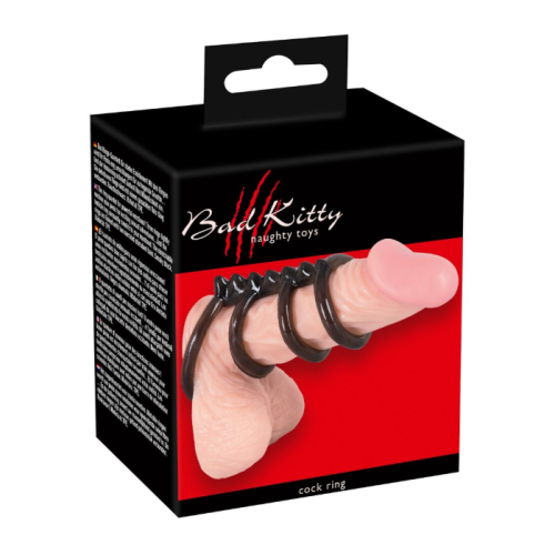 Насадка на член із чотирьох кілець чорного кольору Bad Kitty Cock4 rings