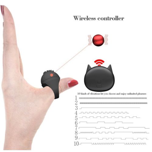 Вібратор на палець у формі кішки для клітора з пультом дистанційного керування чорного кольору Magic ring