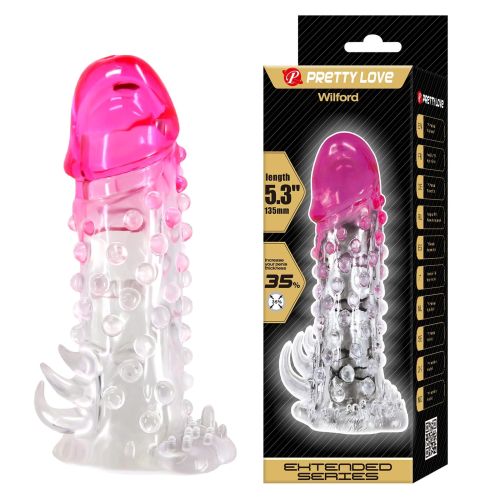 Насадка презерватив на член з пухирцями прозоро-рожевого кольору Lybaile Pretty Love Wilford