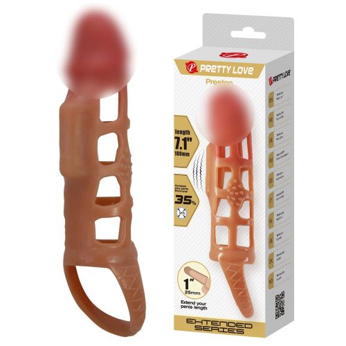 Вібронасадка презерватив на член з петлею реалістична коричневого кольору Lybaile Pretty Love Preston