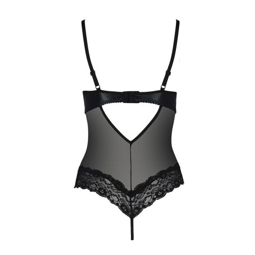 Пропонуємо купити сексуальне боді PASSION NORTH BODY чорне, виготовленого з фатину, лами і мережива. Елегантна білизна чорного кольору красиво обрамляє жіночий силует, підкреслюючи достоїнства фігури. Прозоре боді має відкритий бюстгальтер з кісточками, які будуть підтримувати вашу груди, роблячи її ще більш апетитною і бажаною. У трусиків є розріз в паху, що підсилює відвертість білизни. Боді North розбудить найпалкіші сексуальні фантазії вашого чоловіка, а ви будете відчувати себе такою сексуальною в цьому вбранні.