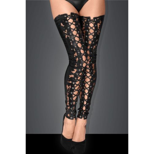 Вінілові панчохи з гіпюровими вставками, завдяки сексуальному шнурівці, виглядатимуть 100% ідеально, регулюйте обсяг самостійно або довірте партнеру.