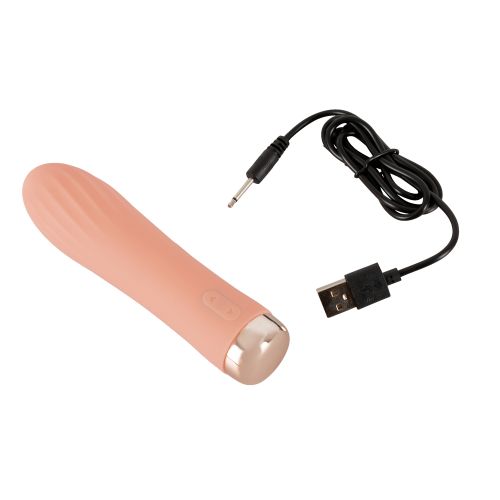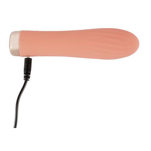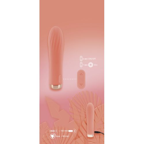 Пастельний красивий ребристий міні-вібратор від Peachy! в стимулюючому жолобковому дизайні з пухкої головкою - поміститься в будь-яку кишеню! 10 режимів вібрації забезпечують різноманітне задоволення при вагінальних та анальних іграх, а також при стимуляції зовнішніх точок задоволення, та зручно регулюються вгору та вниз одним натисканням кнопки. Високоякісний силіконовий матеріал з м'якою на дотик текстурою забезпечує дуже приємні відчуття на шкірі під час гри та пустощі. Перезаряджається - USB-кабель для заряджання входить у комплект.