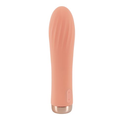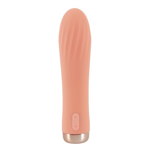 Силіконовий міні вібратор ребристий персикового кольору Cuties Mini Ribbed Vibrator