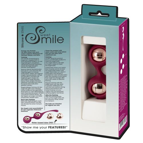 Відкрийте новий світ задоволення та турботи про себе з вагінальними кульками для тренувань Кегеля бордового кольору. Ці вишукані тренажери від бренду Sweet Smile, створені в Німеччині, допоможуть вам зміцнити інтимні м'язи та покращити якість вашого сексуального життя. Бордовий колір кульок додає їм особливої елегантності, привертаючи увагу до їх неперевершеного стилю. Відчуйте впевненість з кожним тренуванням і покращуйте своє здоров'я легко та приємно!