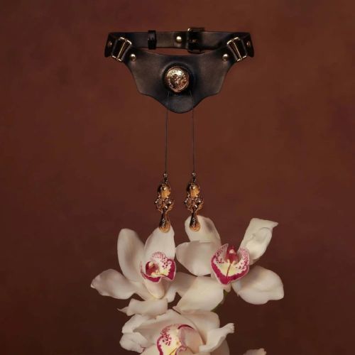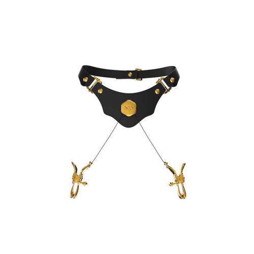Нашийник чорний зі шкіри UPKO Mystic Bond Collection із затискачами для сосків