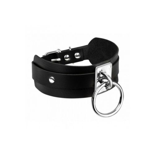 Нашийник широкий чорний із сріблястим кільцем Kinky Diva Collar Me