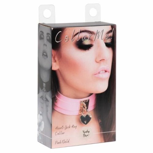 Нашийник широкий рожевий Kinky Diva Collar Me! із золотистим замочком у вигляді серця та ключиком