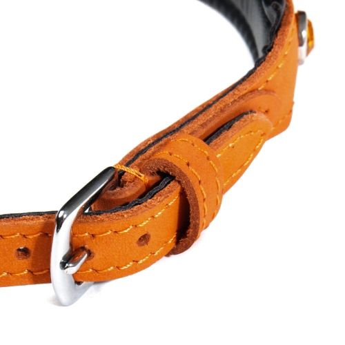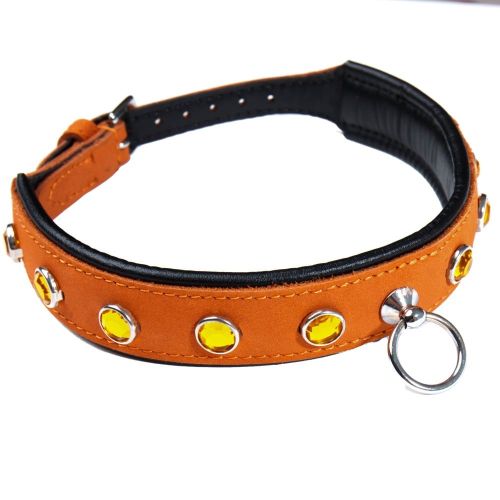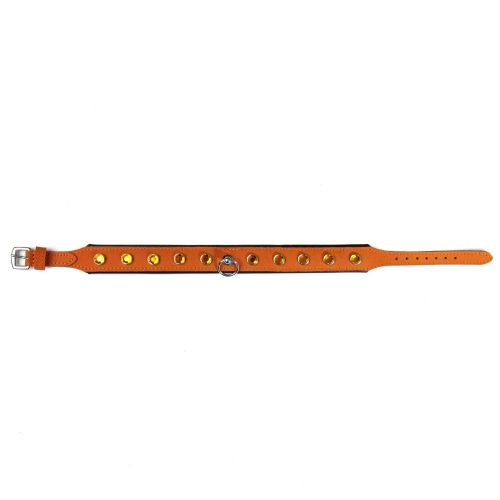 Нашийник зі стразами тонкий DS Fetish шкіряний, помаранчевий (Голландія)