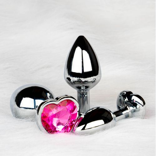 Анальна пробка срібляста з рожевим каменем у вигляді серця Ouch!