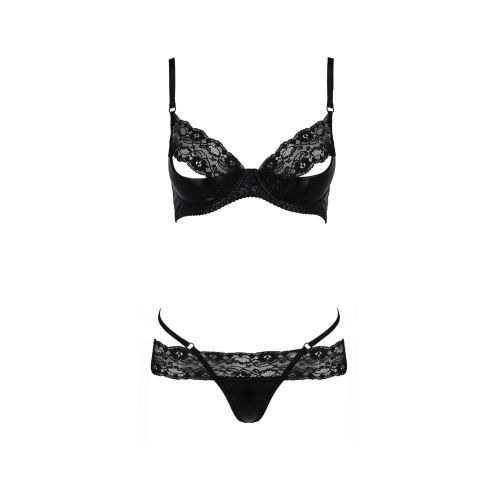 Комплект білизни Passion Exclusive – North Set, що включає бюстгальтер та трусики з елементами з латексу. Сексуальний вечірній комплект PASSION NORTH SET чорного кольору із сонячним дизайном. Вибирайте білизну як вранці, так і ввечері, гарантуючи стиль та комфорт у будь-яку пору дня. Хороші мереживні вставки розбудять усі пристрасні бажання вашого партнера, і ви відчуєте себе таким бажаним та привабливим у комплекті білизни North.