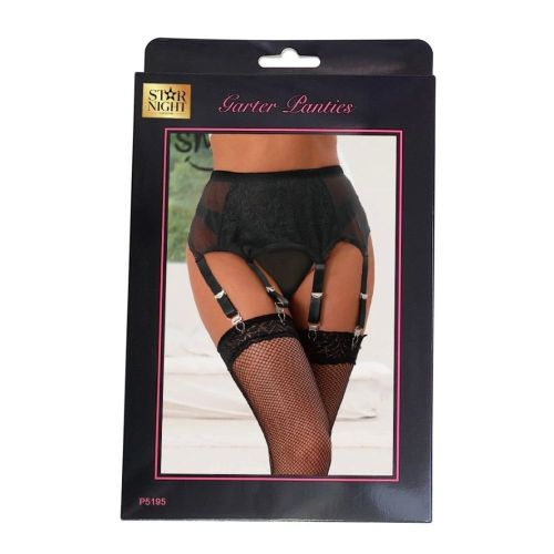 Еротичний Мереживний комплект підтяжки для панчіх та стрінги чорного кольору Star Night